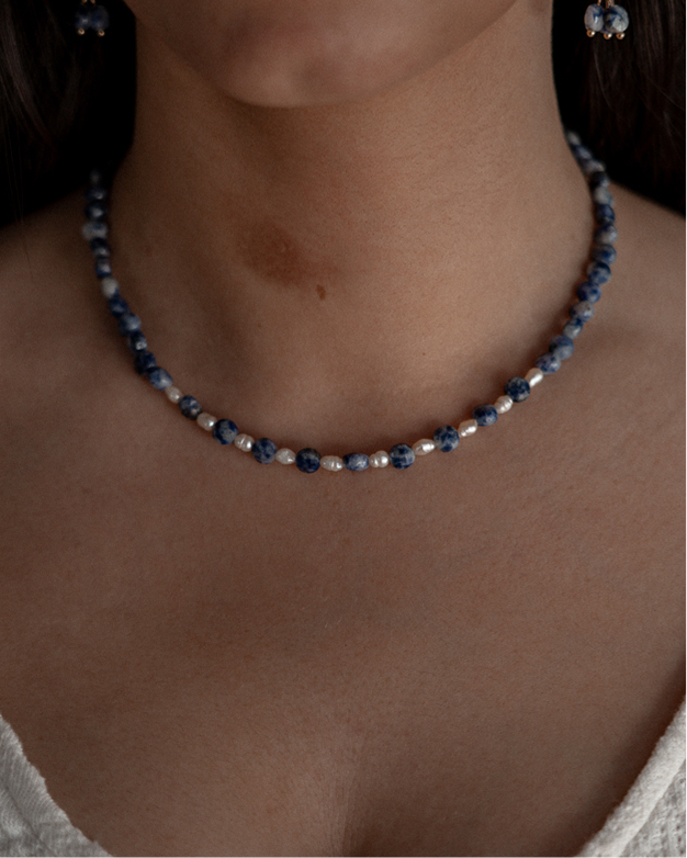 -Material: Pedra sodalita e pérolas naturais de água doce.